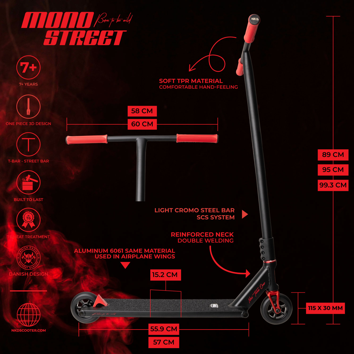 NKD MONO tilbyr et omfattende spekter av funksjoner som maksimerer din trick-opplevelse. Med kvalitetskomponenter som inkluderer barer av Crmo-stål og myke, komfortable TPR-håndtak, samt innovasjoner i materialvalg og design, er det en klok investering for alle som ønsker å dominere gatene med stil og ytelse. Uansett ditt erfaringsnivå, vil NKD MONO heve dine ferdigheter og ytelse til nye høyder med sikkerhet og tillit.