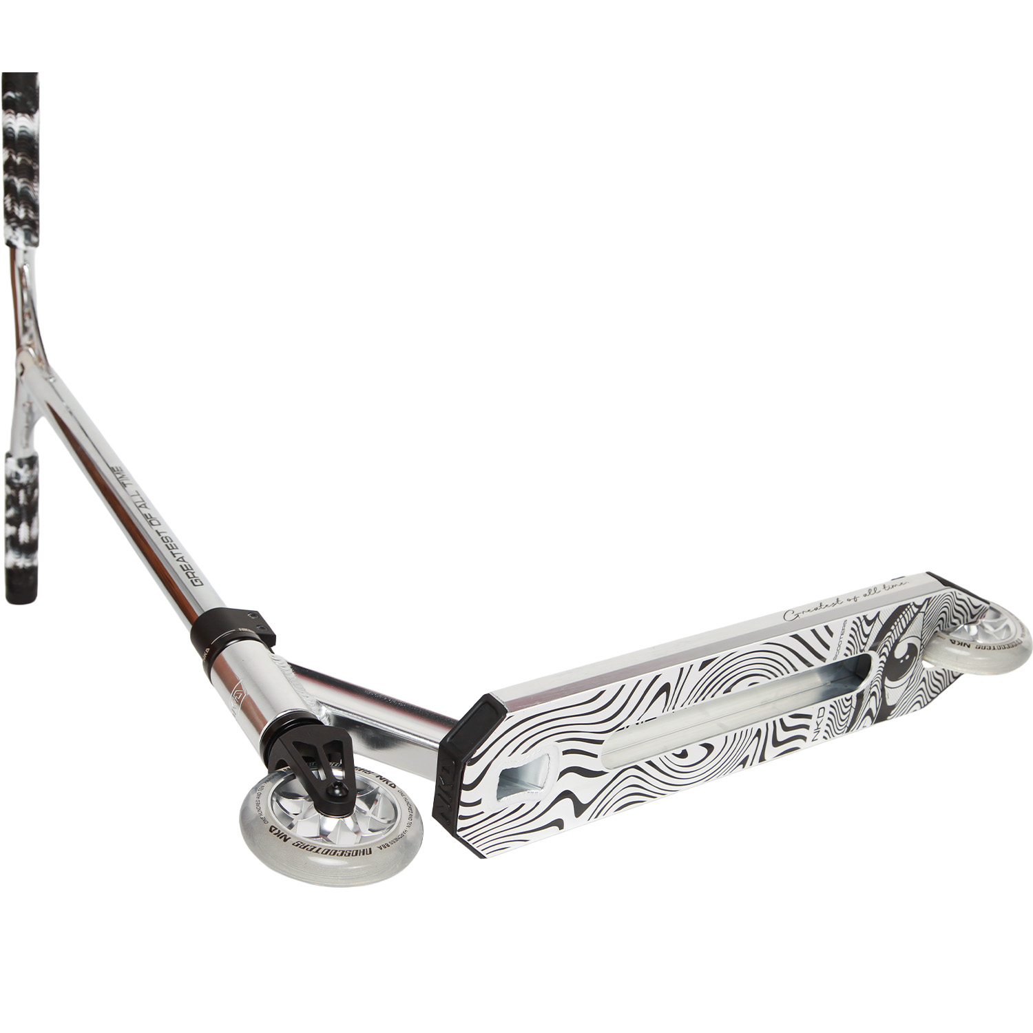 Den "Greatest of All Time"-sparkesykkelen, designet for både nybegynnere og erfarne ryttere fra 5 år og oppover. Enten du er på skateparken, på gata eller i et annet tillatt område, er denne sparkesykkelen din ultimate følgesvenn. Testet av det profesjonelle NKDscooter-teamet, er den bygget for å tåle påkjenningene ved aggressiv kjøring.
