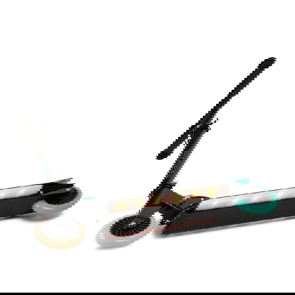 Eventyret venter! Story Party LED Justerbar Barn Sparkesykkel er den perfekte følgesvennen for unge ryttere fra 3 til 10 år. Med sitt blendende LED-dekk, drevet av et oppladbart lithium batteri, vil barnet ditt lyse opp hver tur.