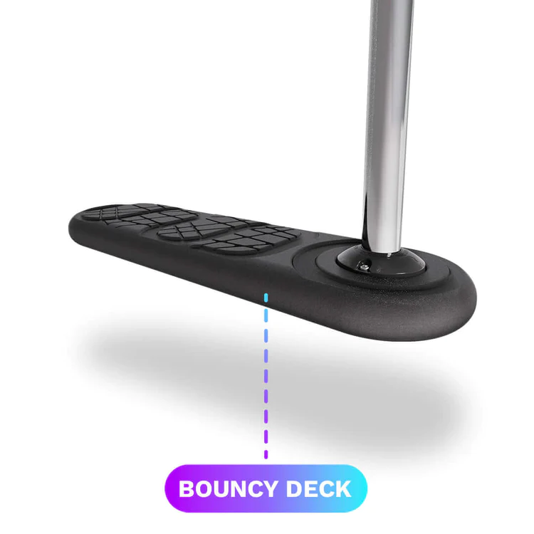 Vurderingen av det sprettende skumdekket viser hvor myk, polstret og trampolinevennlig dekket er. En viktig egenskap for triks sparkesykkel på trampoline – denne skumpolstringen beskytter føttene dine under gjentatte triks og gir lengre og tryggere treningsøkter.