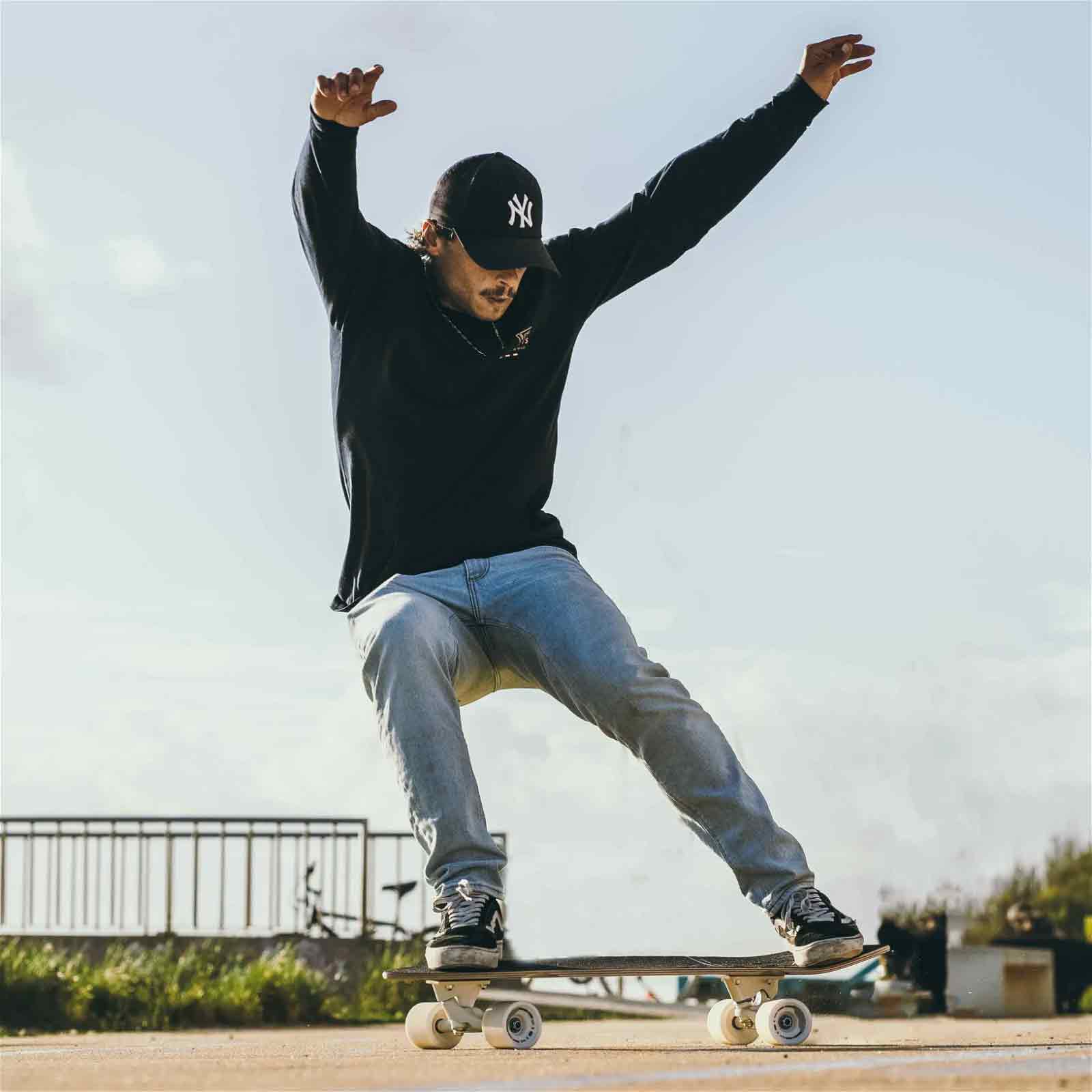 Disse retningsbestemte surfskøyterne er formet som et gammelt skolebrett med en grunne konkav for en stabil sterk tur, en kick-tail for stunts og cutouts (hjulbrønner) som reduserer sjansene for wheelbite mye. Dette sikrer deg en longboard som passer perfekt til hva en surfskate burde kunne levere, noe som betyr det ultimate surfet som å føle seg oppleve når du går på skøyter på veiene.