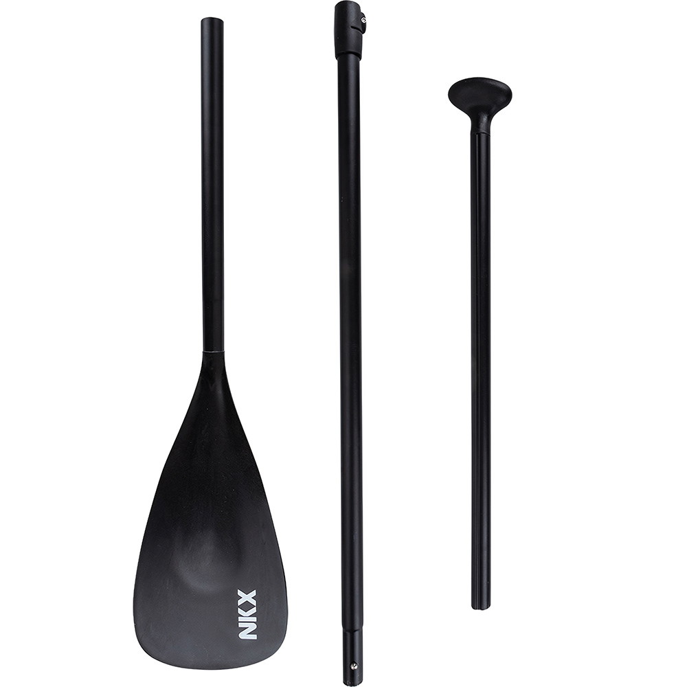 Three-piece SUP padlen har to justeringshåndtak, noe som gir mye friksjon på vannet og dermed reduserer dynamikken. |