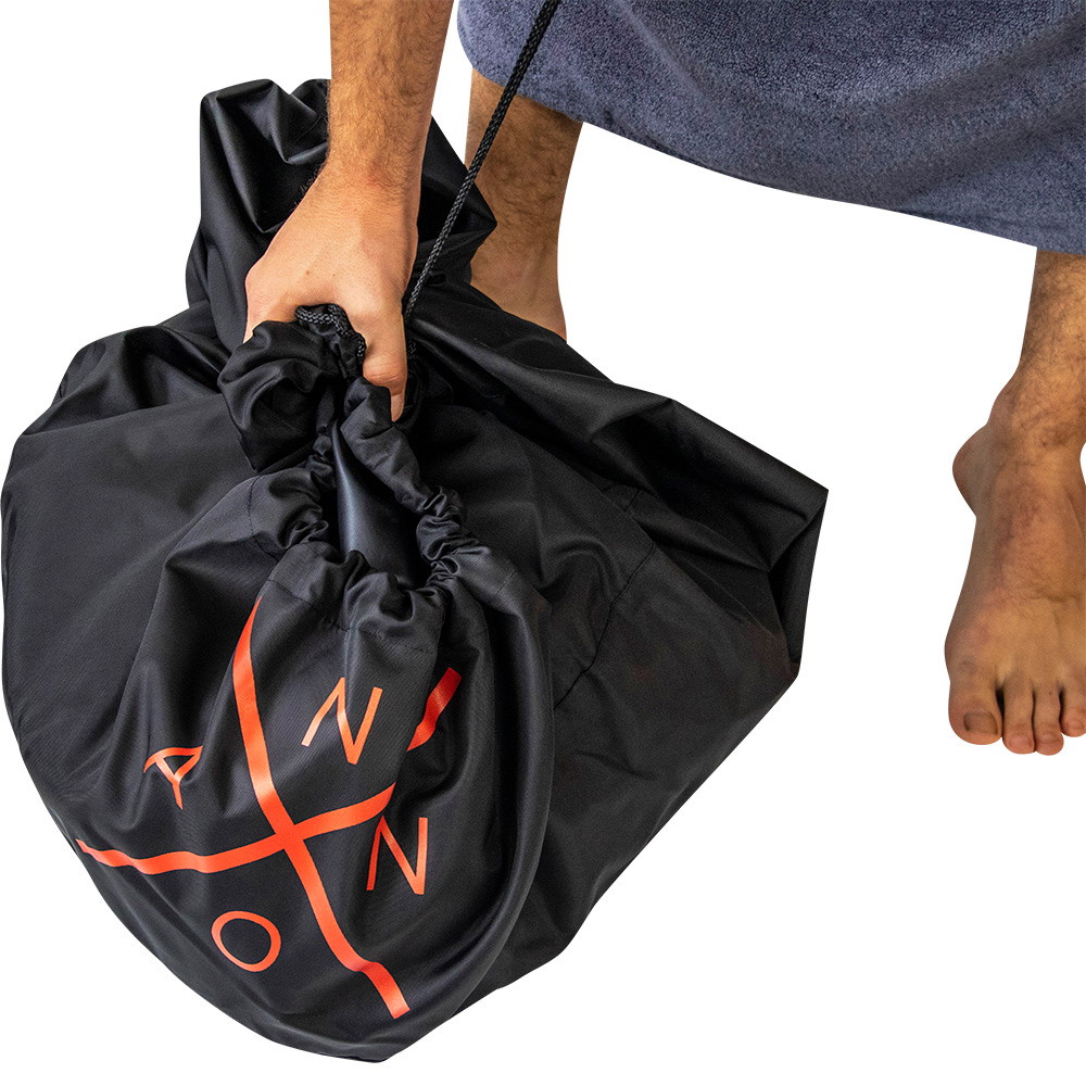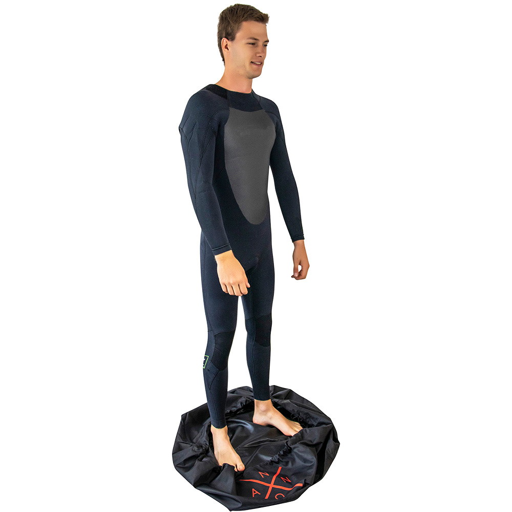 Denne omkledningsmatten er ikke bare et omkledningsunderlag, men også en praktisk bag for din våtdrakt eller badetøy. Den gjør det mulig å holde alt utstyret ditt organisert og transportere det enkelt, noe som gjør den til en allsidig løsning for både omkledning og oppbevaring. Det intelligente snøresystemet gjør det enkelt å lukke matten og sikre eiendelene dine. Matten er designet for å være både kompakt og lett, noe som gjør den lett å transportere og oppbevare. Den tar lite plass, så du kan ta den med deg overalt uten problemer, og den er perfekt for både korte turer og lange reiser.