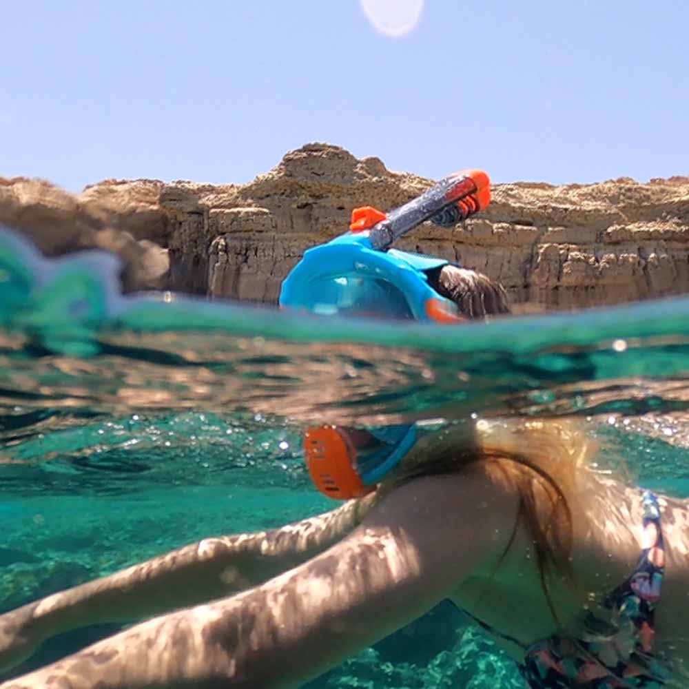 Full ansiktsbeskyttelse og enkel pust for sikker snorkling