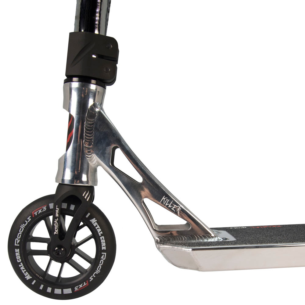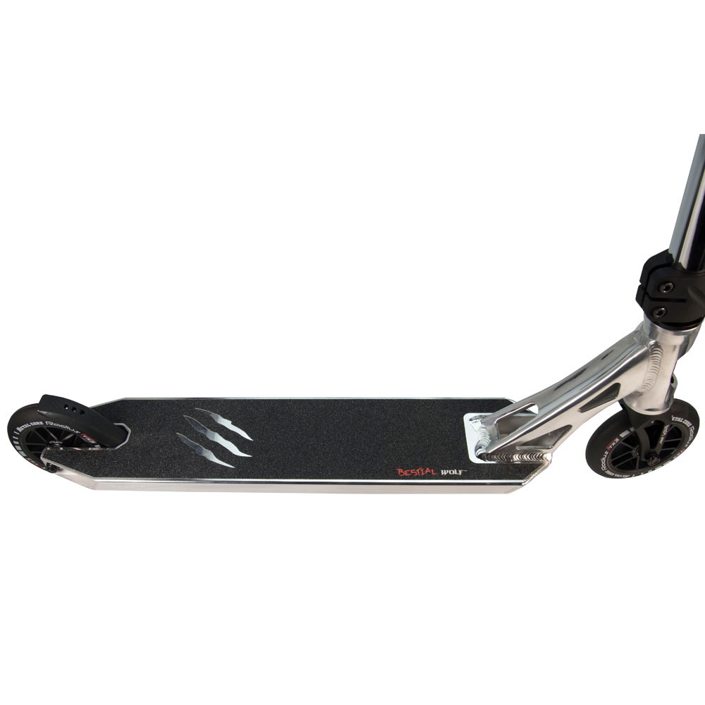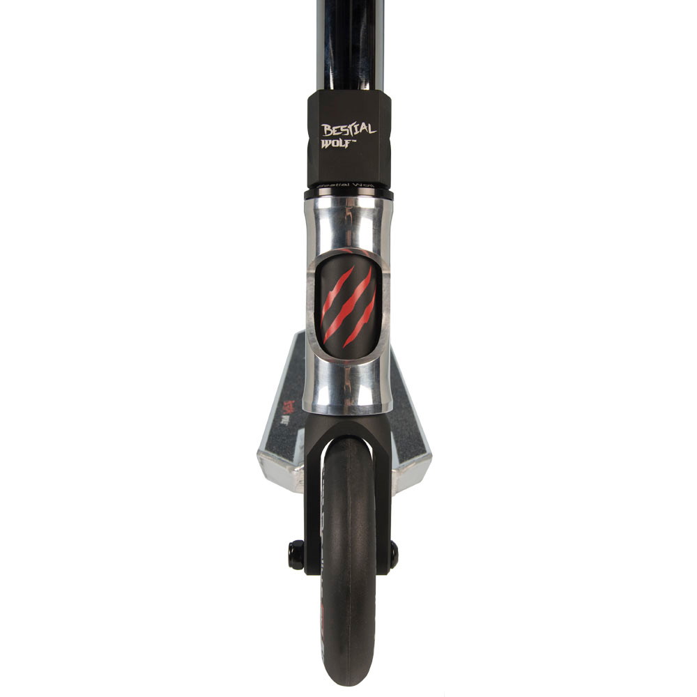 Dette er Bestial Wolf topp kvalitet stunt scooter for profesjonelle ryttere, men også nybegynnere scooter drøm. Det er en morder på gata og vil gjøre deg alfa av pakken i alle skaterparkene, når du rir ved å utføre de syke og mest fantastiske stunts man kan gjøre på en stunt scooter!