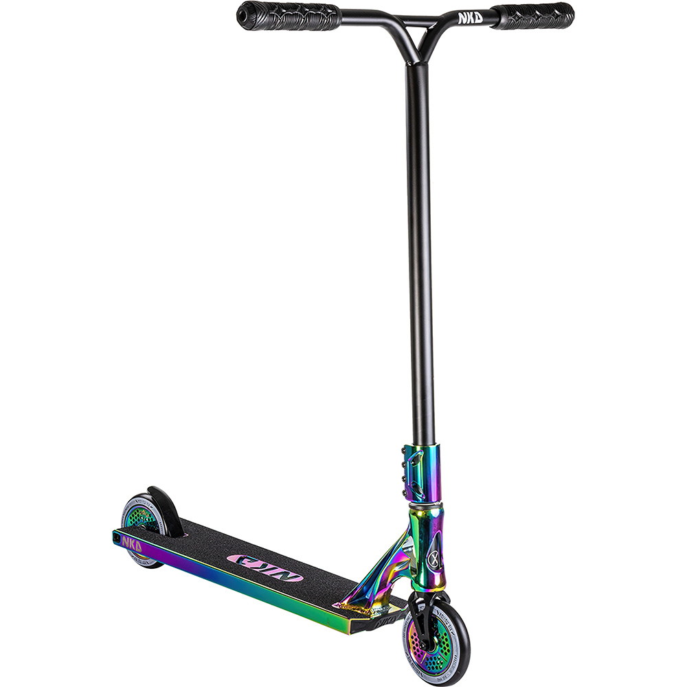 NKD Extreme er den hittil sterkeste trik sparkesykkel. Den er designet for de mest ekstreme sparkesykkel-stunts, og passer både for skatepark og gatetur. Om du er nybegynner eller profesjonell spiller ingen rolle. NKD Extreme kan brukes til å forbedre dine evner, og til hardcore-stunts med mange wild spins. En flott trik sparkesykke!
