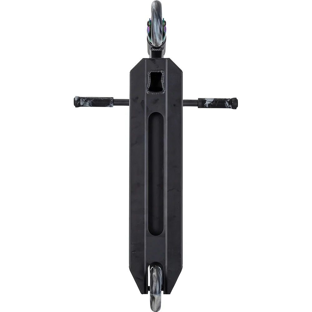 Sparkesykkelen bruker den populære Signature frontgaffel og en 3D-designet hals med sidekurver, som begge forsterker denne proffe stunt sparkesykkelen, men reduserer også vekten.