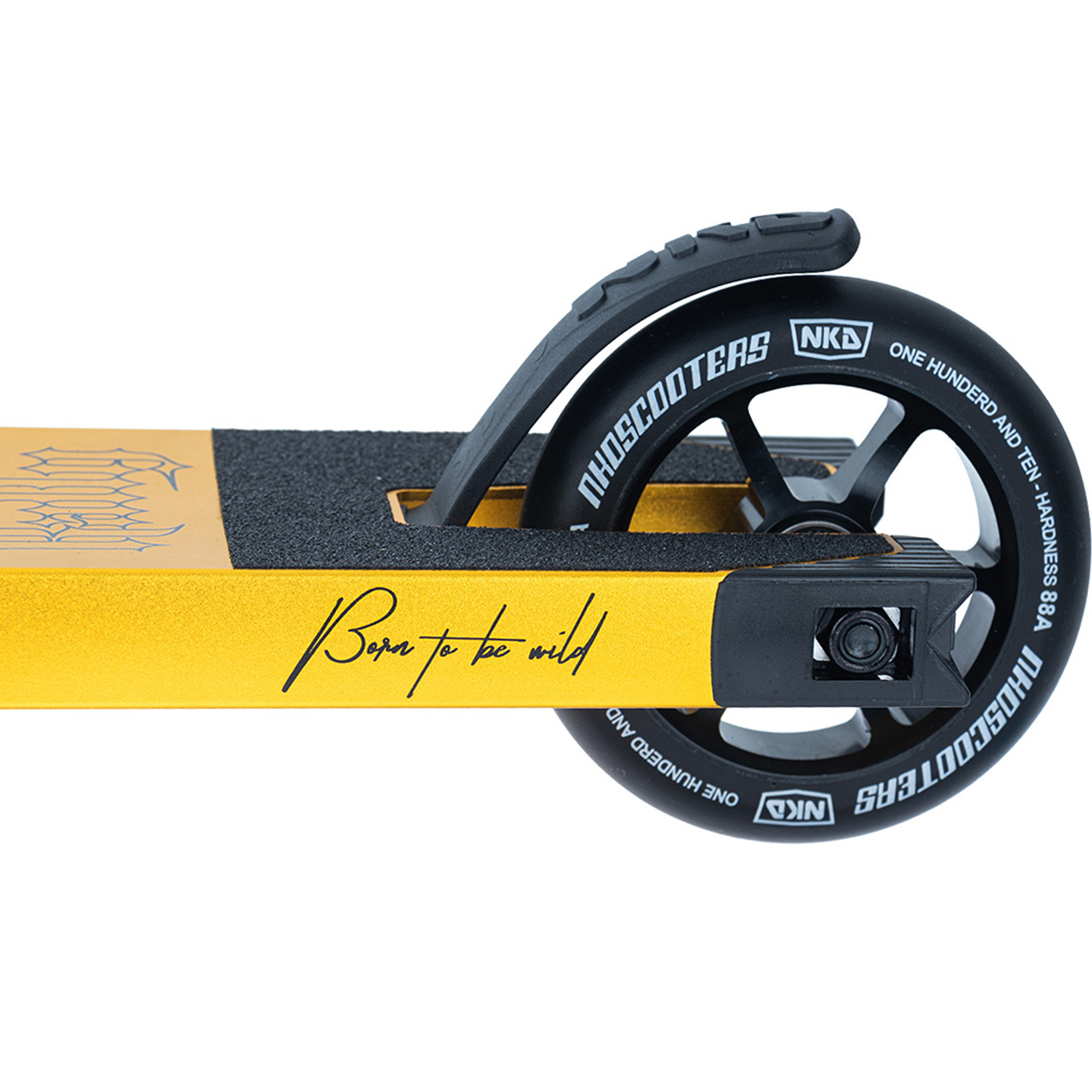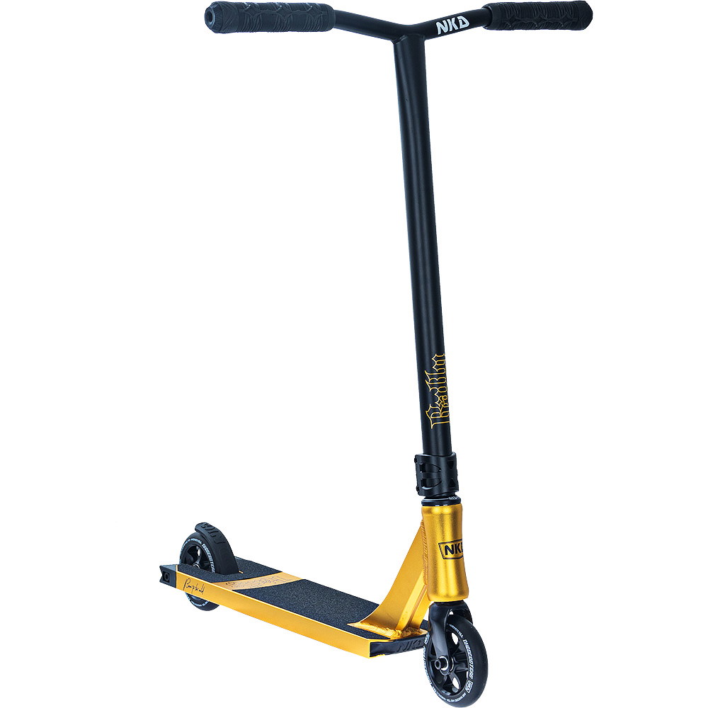 Er du klar til å bli blåst bort? NKD Rally Stunt scooteren er her for å samsvare verden og det vil at du skal komme med. Denne stunt scooteren kan ri på gatene og ramper, mens du glir på alt på vei, som det er det eneste det noen gang har gjort. Det er perfekt for alle slags ryttere, enten du er nybegynner eller har ridd i årevis. Det er en blanding av styrke og lyshet, med krombjelken og det brede aluminiumsdækket, med ekstra slipeskinner.