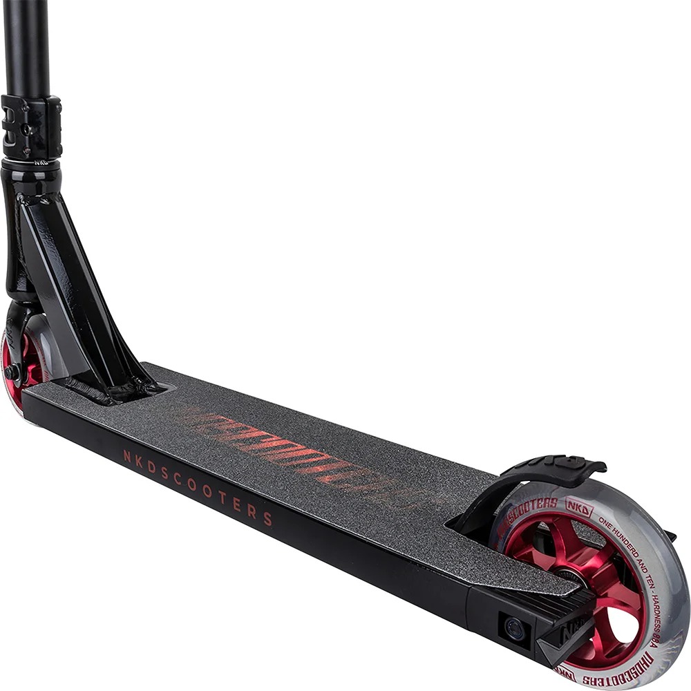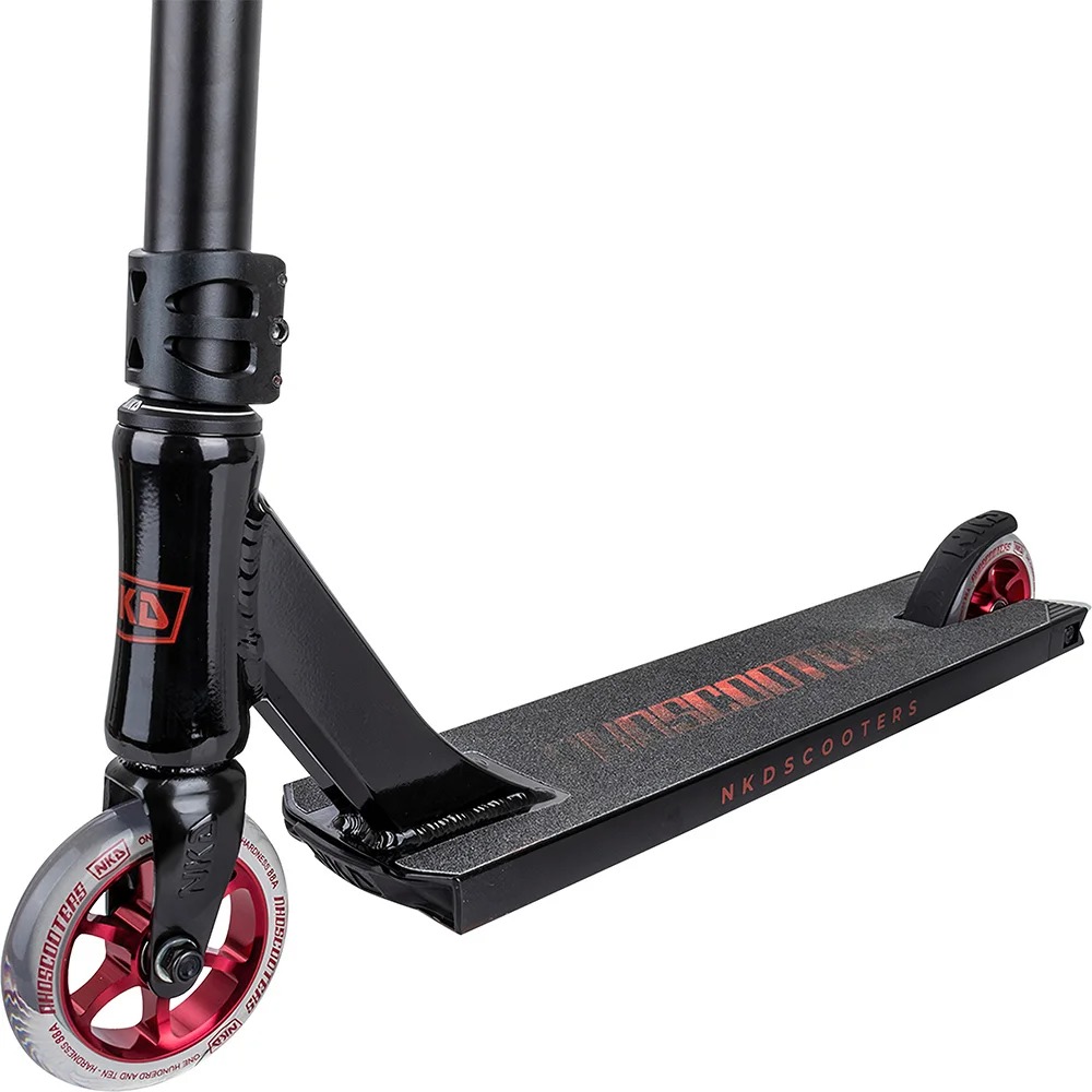 Er du klar til å bli blåst bort? NKD Rally Stunt scooteren er her for å samsvare verden og det vil at du skal komme med. Denne stunt scooteren kan ri på gatene og ramper, mens du glir på alt på vei, som det er det eneste det noen gang har gjort. Det er perfekt for alle slags ryttere, enten du er nybegynner eller har ridd i årevis. Det er en blanding av styrke og lyshet, med krombjelken og det brede aluminiumsdækket, med ekstra slipeskinner.