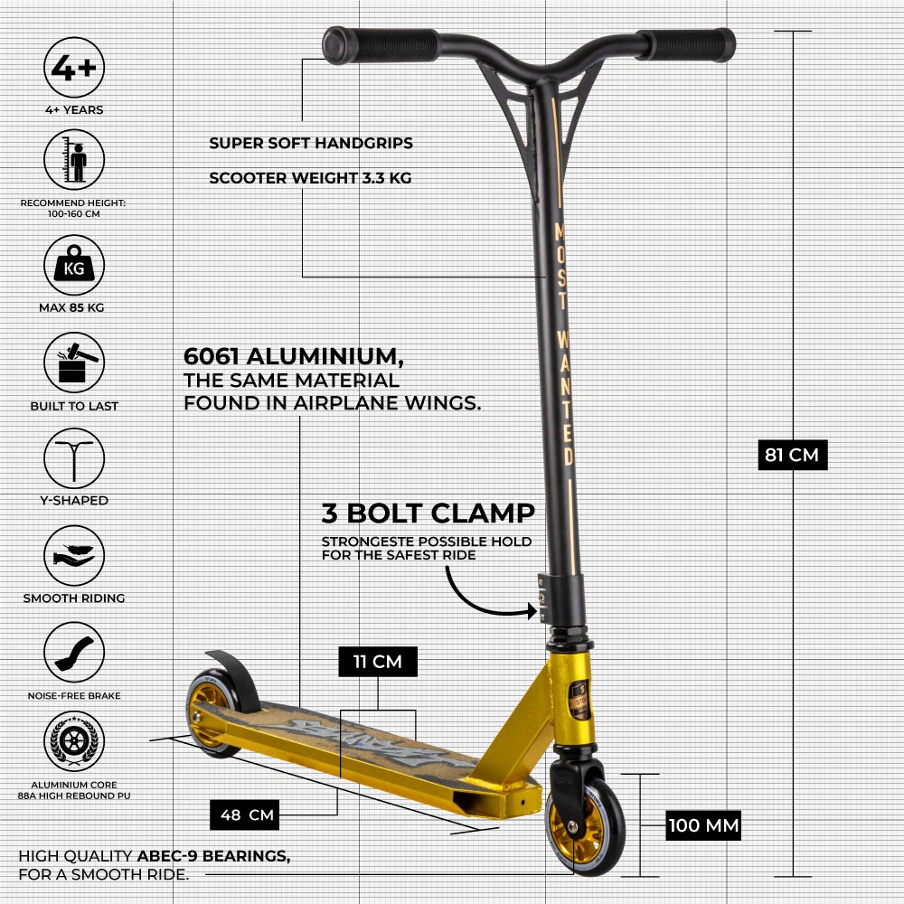 Et godt valg for både helt nye og de med litt erfaring – som ønsker en sparkesykkel som kan vokse med dem og tåle tøffere triks, høyere hopp og mer intens bruk uten å gå på kompromiss med kvaliteten.