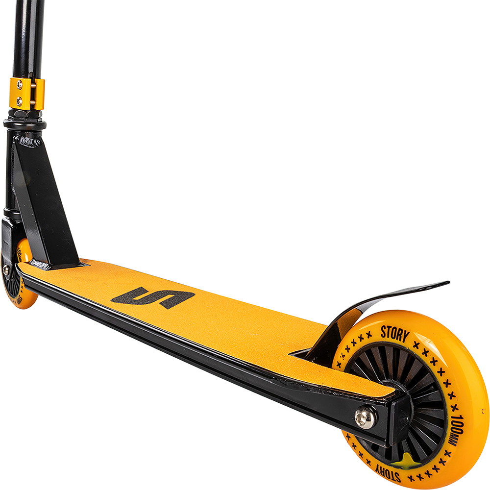 Med lav total høyde og lav vekt er Story Outlaw lett å styre og manøvrere for barn. Plattformens konstruksjon er designet for å være mye lettere enn på større trikse-spareksykler. Den lette vekten går ikke på akkord med styrken i en grad som betyr noe for barn og lette ryttere. En stor moderne utskjæring i plattformen gjør gaffelen synlig gjennom headtuben. Oppsettet, som består av en solid stålstang (styre) og aluminiumsplattform, sikrer at du kan bruke sparkesykkelen dagen lang. Nylon kjernehjul og gjenget kompresjonssystem gjør sparkesykkelen rimelig og ideell for nybegynnere.