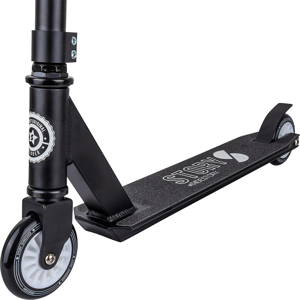 Story Shredder er en lav og lett sparkesykkel som barn raskt kan lære å manøvrere. Oppsettet består av en solid aluminiumsplattform og et sterkt stålstyre. Håndtakene er myke og skånsomme for hendene. Dekket er konstruert uten forsterkninger av sidene for å redusere vekten. Dette er velkjent på barnesparkesykler da det sparer mye vekt og ikke kompromitterer styrken i en grad som har betydning for lette sparkesykkelryttere. De små og raske 100 mm nylon kjernehjulene og det gjengede kompresjonssystemet gjør denne sparkesykkelen rimelig og ideell å lære på.